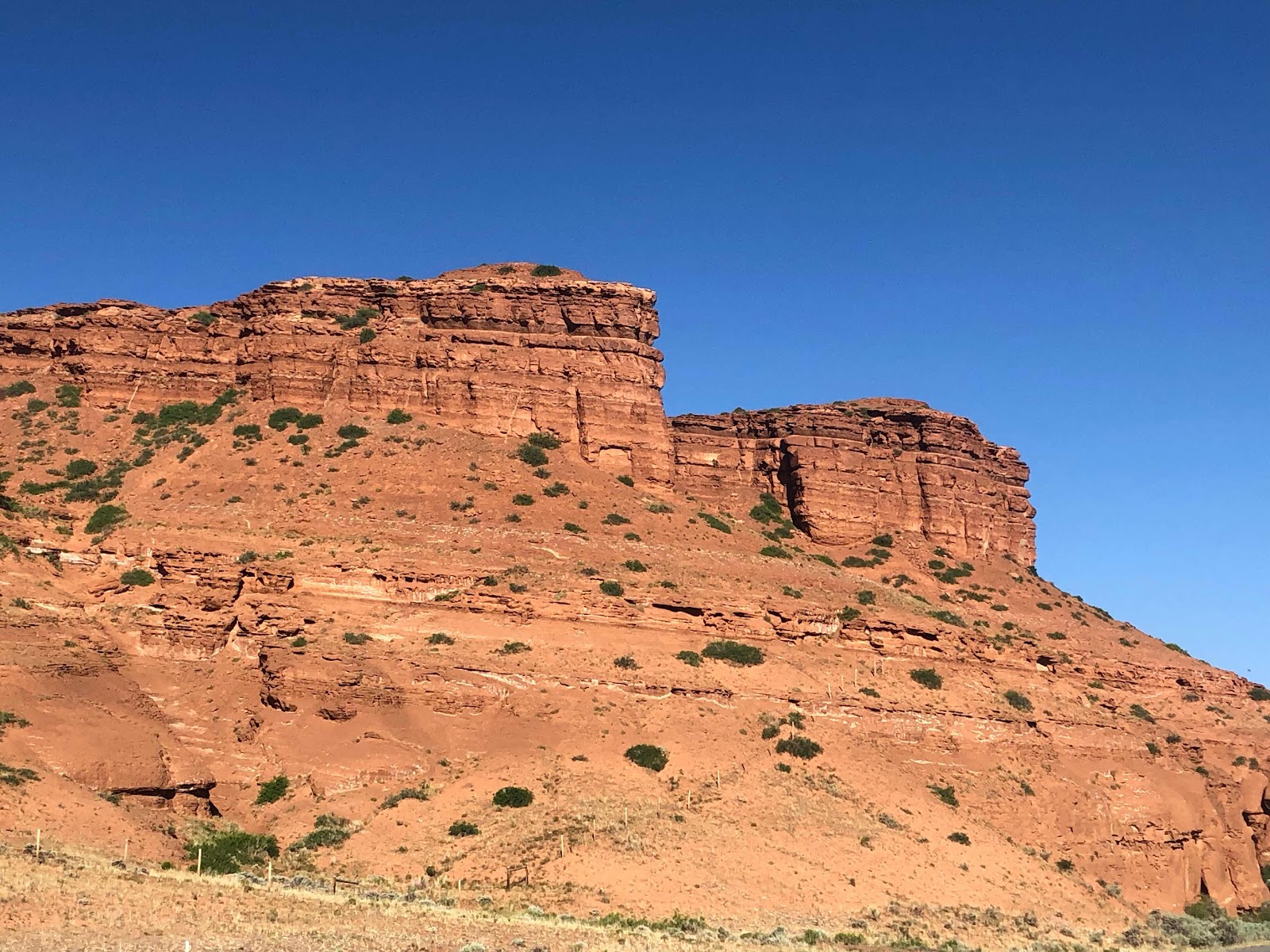 The tailwinds had returned about 9:30. We were also going downhill a fair amount. Miles were ticking by pretty quickly. By Crowheart, we had done just under 30 miles in 2 hours! We stopped at the convenience store, and had a snack, then we were back to flying down the road…for awhile. At about mile 41 for the day, I noticed the wind had shifted. While not a full on headwind, it was definitely no longer a tailwind. We were also doing more climbing. It was all my fault the wind shifted. I had been thinking we were making such good time, that maybe we could go further than Lander, our planned stop for the day. Oh no…that wasn’t going to happen if we had more of a headwind!