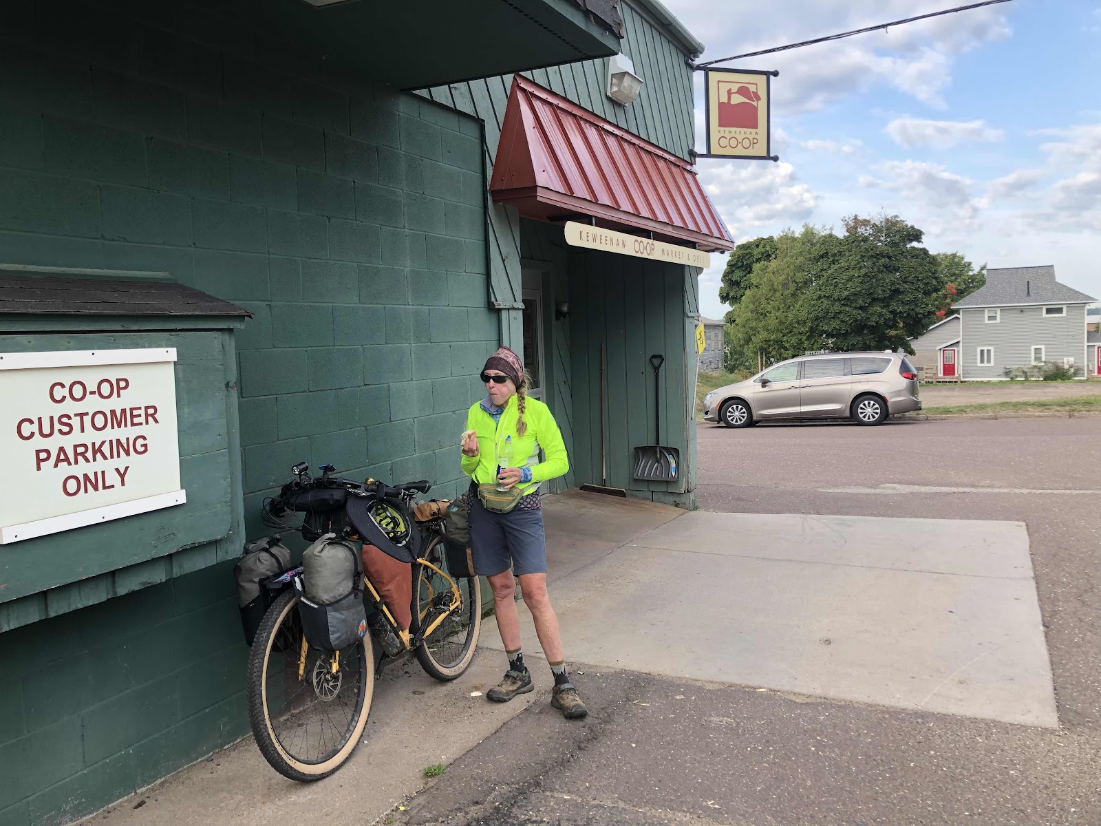 We rode the Hwy into Houghton (pronounced Hoe-ton). Lani wanted to go to the Keweenaw Food Co-op. Let me tell you about Houghton…it’s on some very steep hills, and the Co-op is at the top (well, maybe not the top, but definitely up there). As I was huffing and puffing my way up a particularly steep part, I said to Lani, “This Co-op better be good!” Okay, it was. They had lots of great options, and a nice bulk food section. I was able to get some rolled oats in bulk (don’t have to carry so much). Also got some dried mango. We are pretty tired of what we’ve been eating, so it was nice to get something different. I got a Chickpea Tikka Masala (just on the verge of too spicy for me) package. I should have also got some sticky rice, but the Tikka Masala was okay without it.