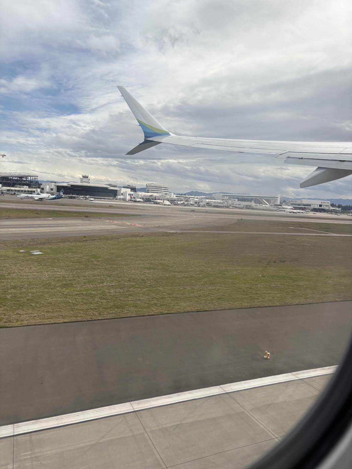 The Alaska Bag Drop had a long line. We were four big bike boxes/cases and three large duffel bags. That means we had to go to both oversize and regular bag drop locations. New trick we learned from Erin Roe…go to oversize first and get rid of the box/case. However, turns out an agent has to scan the bag tag. There was no agent. Back to the regular line. Then an agent came to the regular line and told us to go to oversize first, and she would scan our tags. Okaaaay!!! We did that, then returned to the even longer regular bag drop. An employee said there was another bag drop downstairs with a much less line. Off we went. It was, indeed a MUCH shorter line. In fact, no line at all! Once the bag drop debacle was completed, we headed to TSA Spot Saver. I highly recommend doing Spot Saver. We breezed through security in no time…well…Makaela’s bag was flagged, but that’s because she packed everything else in her carryon backpack, and it was very full. The TSA guy told her she should get a bigger bag!