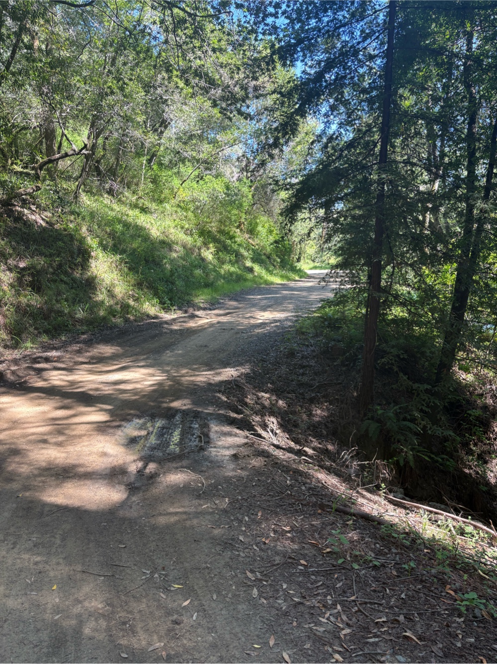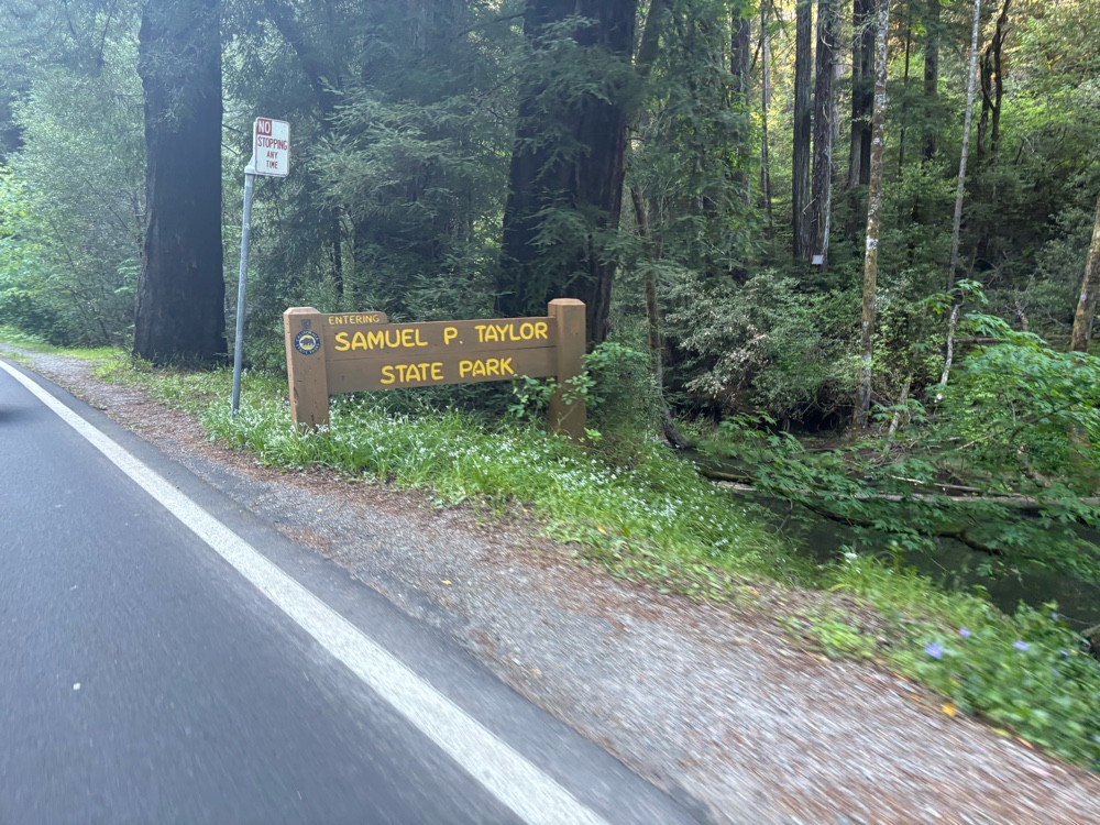 We finally reached the point where it really was downhill all the way to the paved road. Once we hit the pavement, we were not far from our destination of Samuel P Taylor State Park.