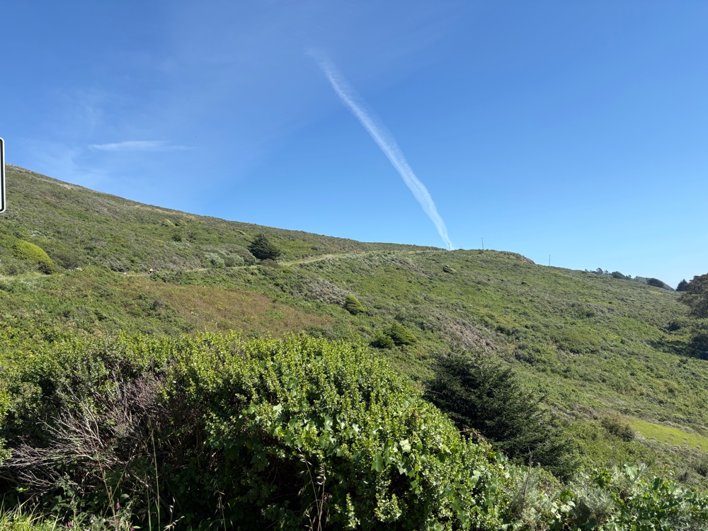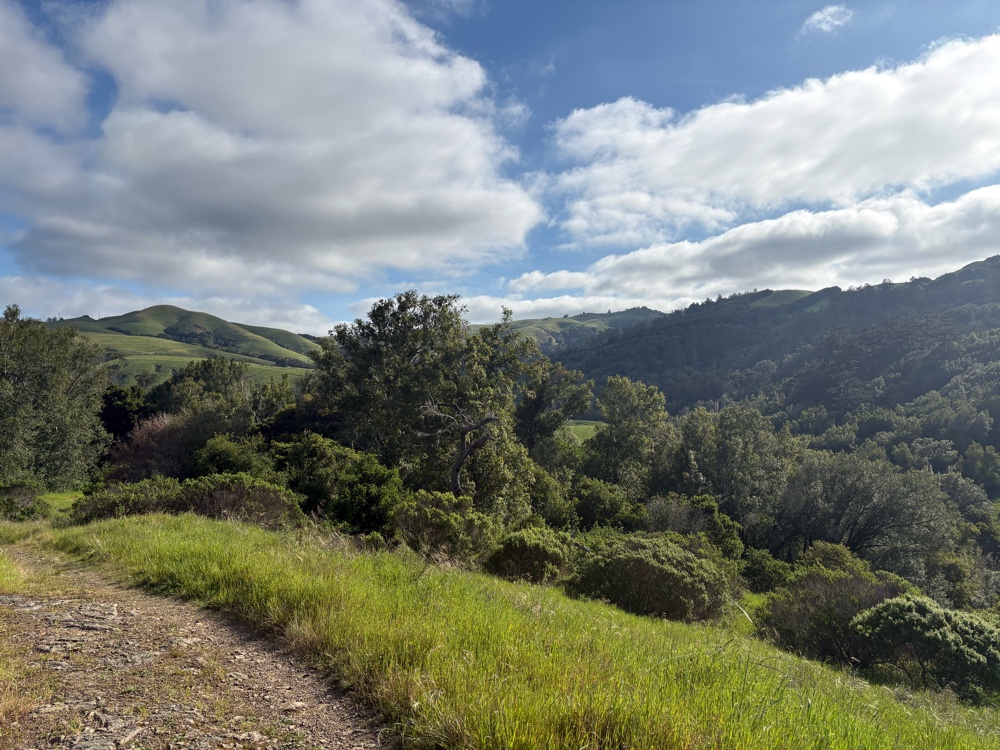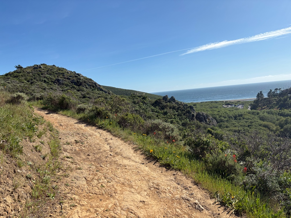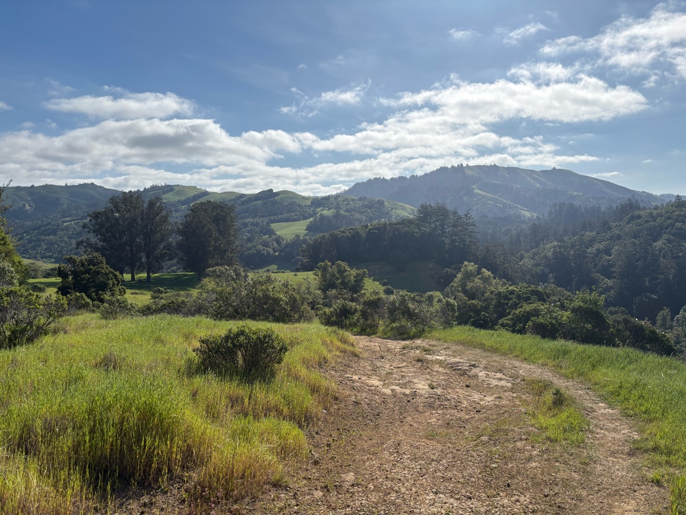 The route went back to trail just across the road from the Pelican Inn. It was Dias Ridge/Miwok Trail. It was appropriate as me was definitely walking again. This climb was 1.6 miles. Again, I was only able to ride a tiny bit.