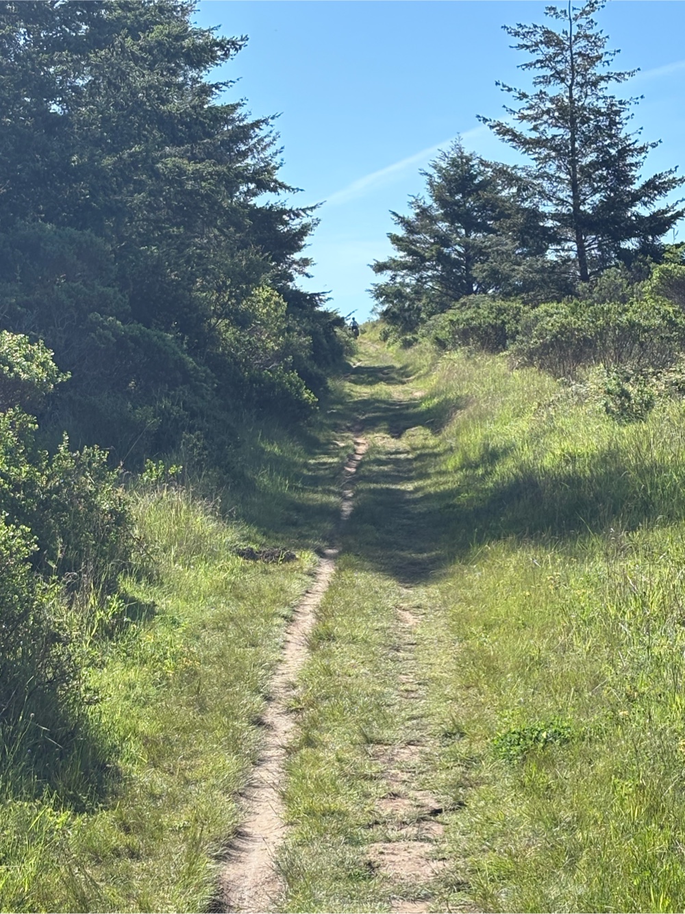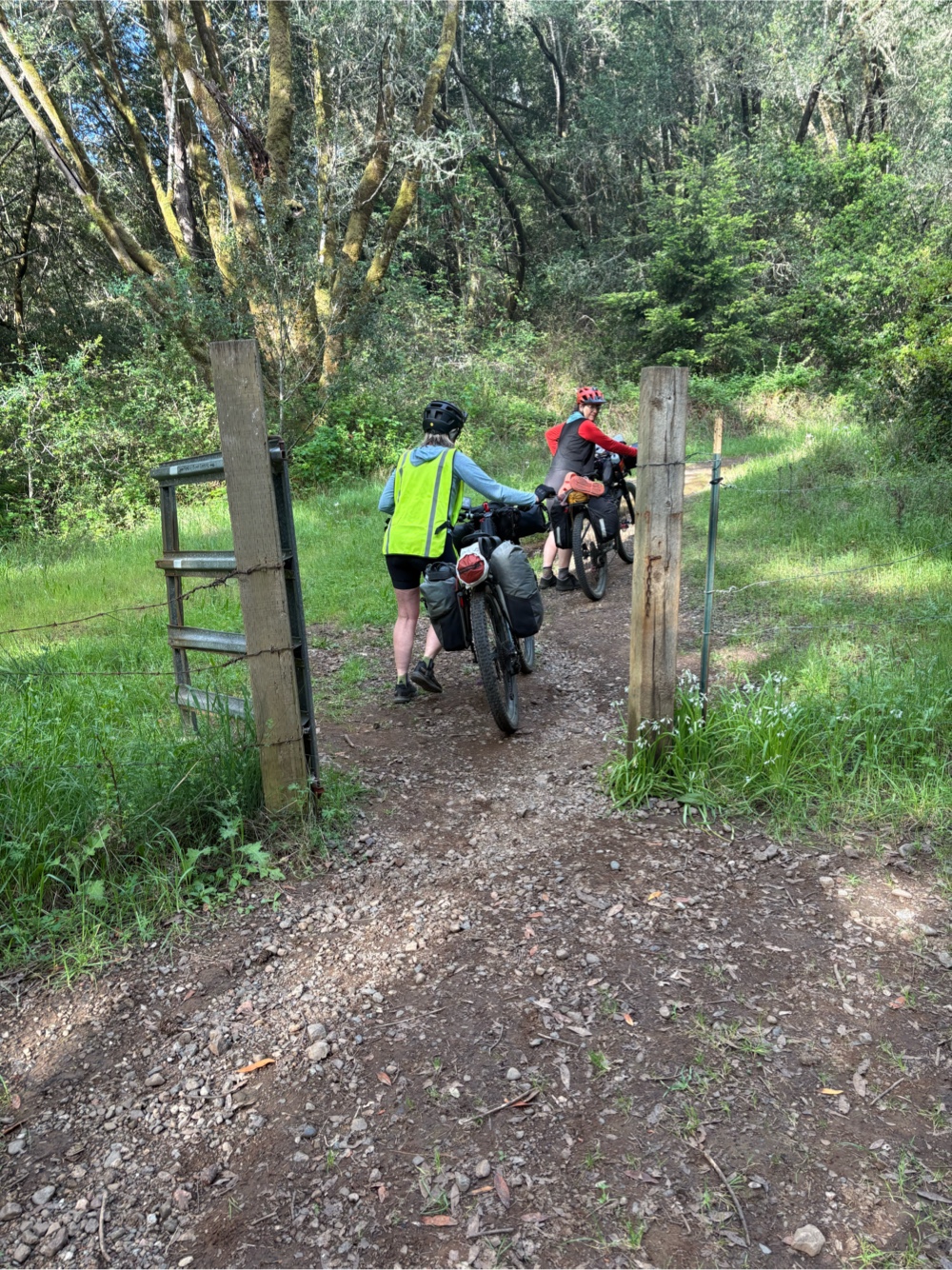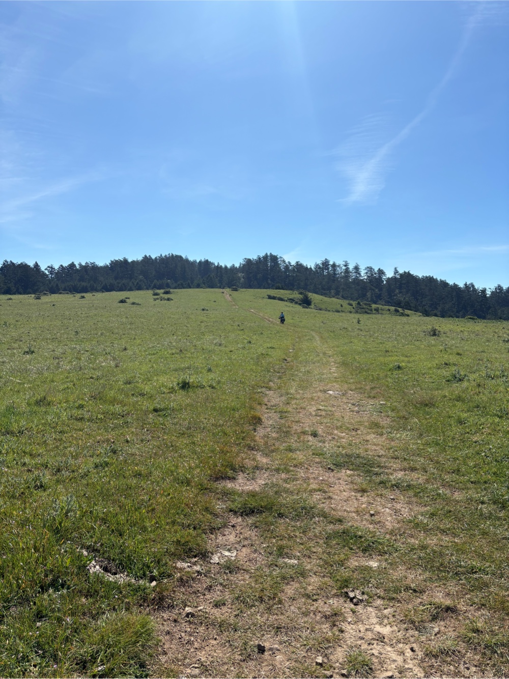 We continued alternating riding and pushing. We started realizing how long it was taking us, how many miles we still had to go, and how many more feet of elevation. We came to the Randall Trail that would go down to Hwy 1. We decided it was the smartest move, and would give us the best chance of actually making it to our campsite (spoiler alert…we didn’t).